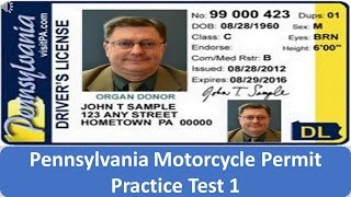 The Pennsylvania DMV motorcycle test consists of 20 questions and. You must pay a fee of 10 to obtain a permit. Questions on the test come from the Pennsylvania Motorcycle Operator Manual.